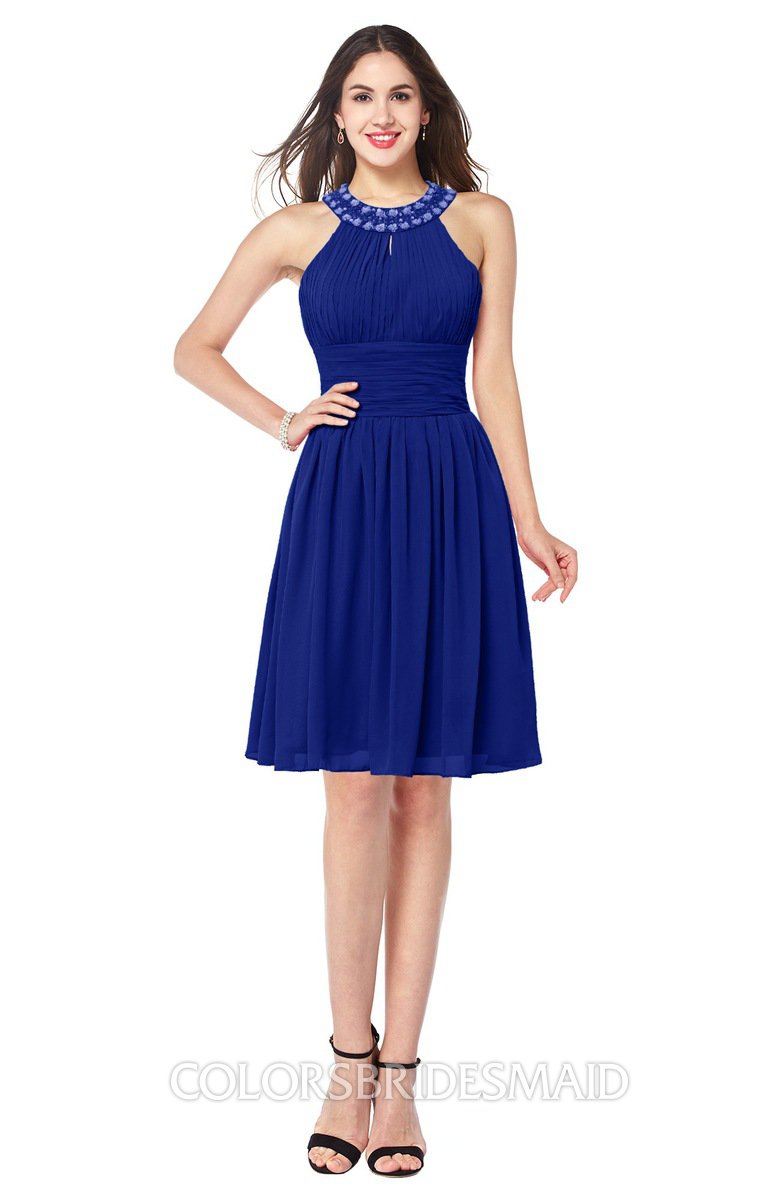 Electric Blue Glamorous A-line Jewel Sleeveless Zipper Knee Length Bridesmaid Dresses