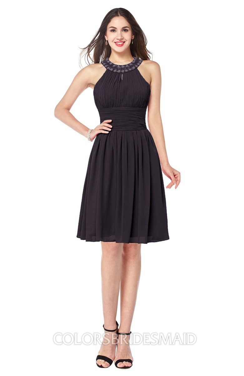 Perfect Plum Glamorous A-line Jewel Sleeveless Zipper Knee Length Bridesmaid Dresses