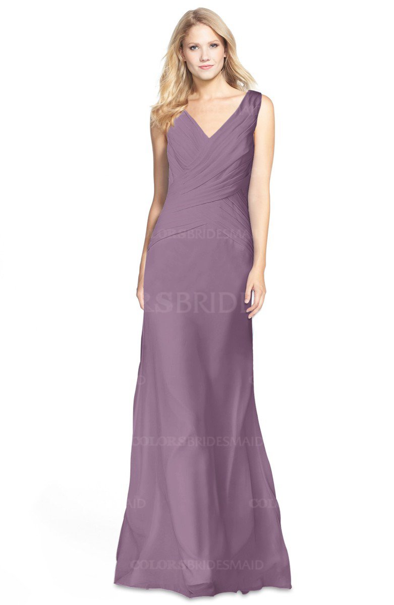 Valerian Gorgeous Fit-n-Flare V-neck Sleeveless Chiffon Ruching Bridesmaid Dresses