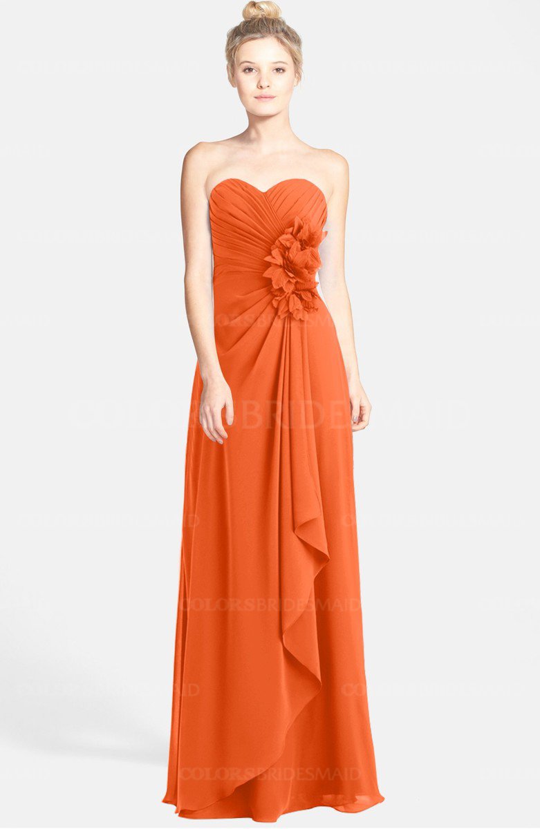 Tangerine Hippie Sweetheart Sleeveless Zip up Floor Length Bridesmaid Dresses