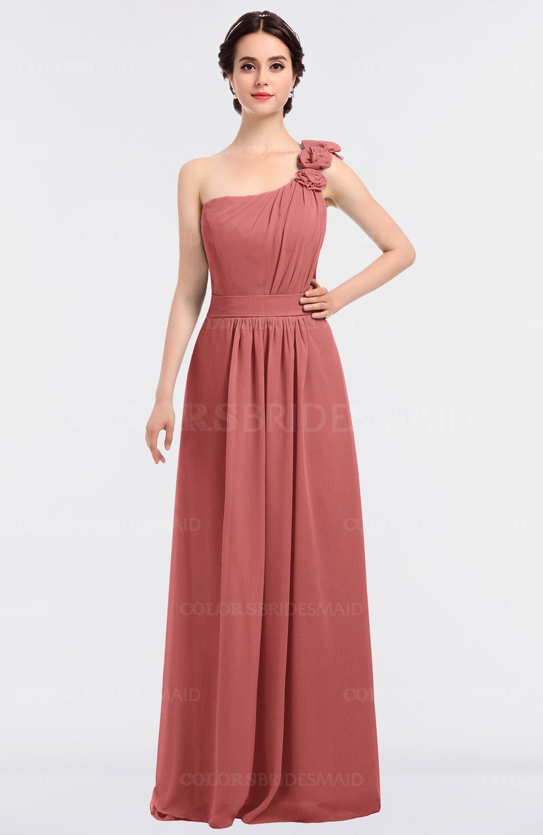 2. ColsBM Nina Coral Glamorous Fit-n-Flare One Shoulder Sleeveless Zip up Chiffon30 Bridesmaid Dresses