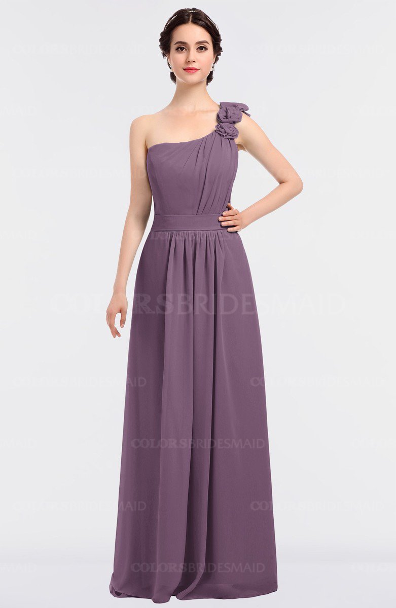 Mauve Mature A-line Asymmetric Neckline Sleeveless Floor Length Flower Bridesmaid Dresses