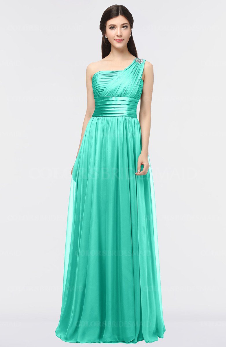 Viridian Green Mature Asymmetric Neckline Zip up Floor Length Appliques Bridesmaid Dresses