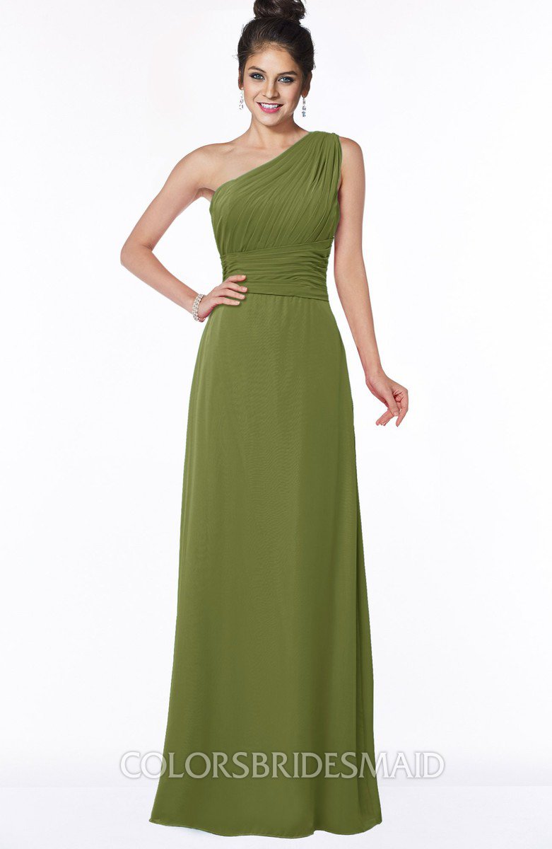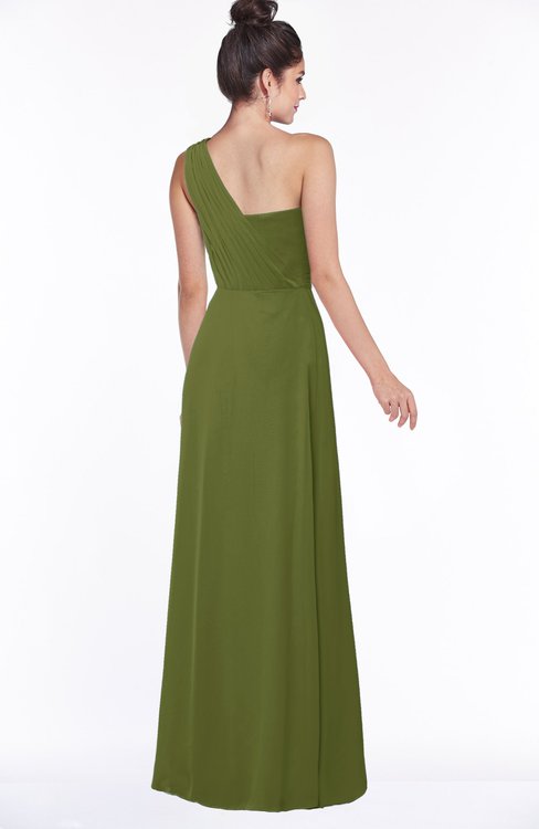 Olive Green Mature Sheath Sleeveless Half Backless Chiffon Ruching Bridesmaid Dresses