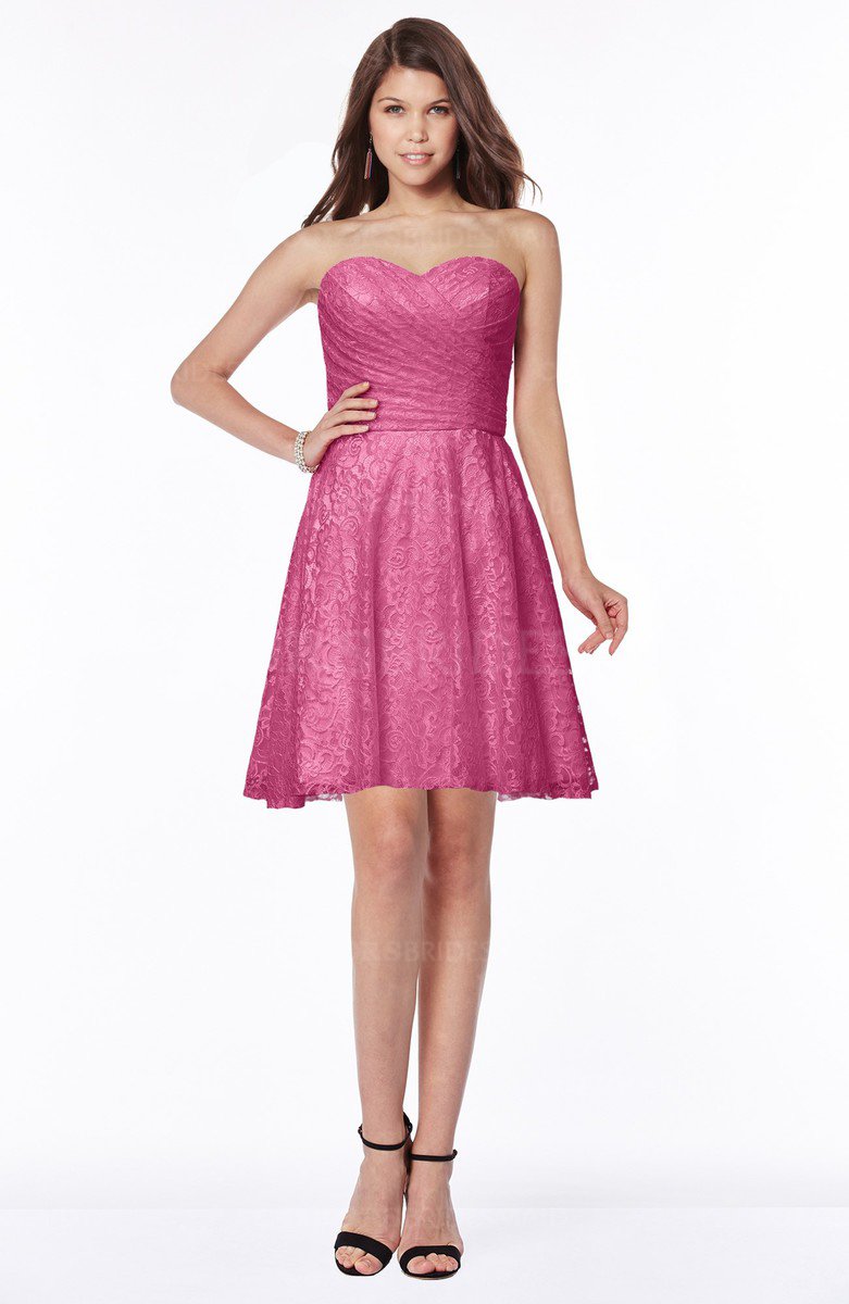 Wild Orchid Mature Sweetheart Satin Knee Length Lace Bridesmaid Dresses