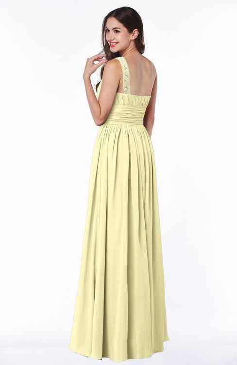 Soft Yellow Modern A-line Asymmetric Neckline Sleeveless Half Backless Chiffon Plus Size Bridesmaid Dresses