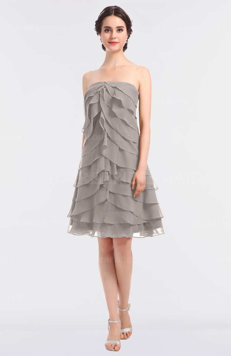 Fawn Modern A-line Strapless Sleeveless Knee Length Edging Bridesmaid Dresses