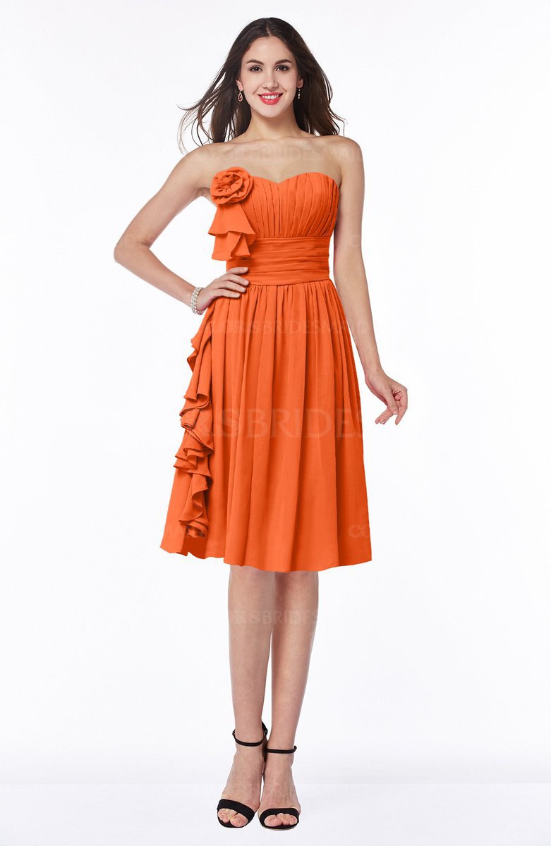 Tangerine Modern A-line Sweetheart Zip up Knee Length Fringe Plus Size Bridesmaid Dresses