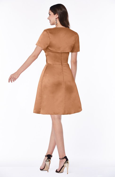 Pheasant Modest Short Sleeve Zip up Satin Knee Length Pleated Mother of the Bride Dresses