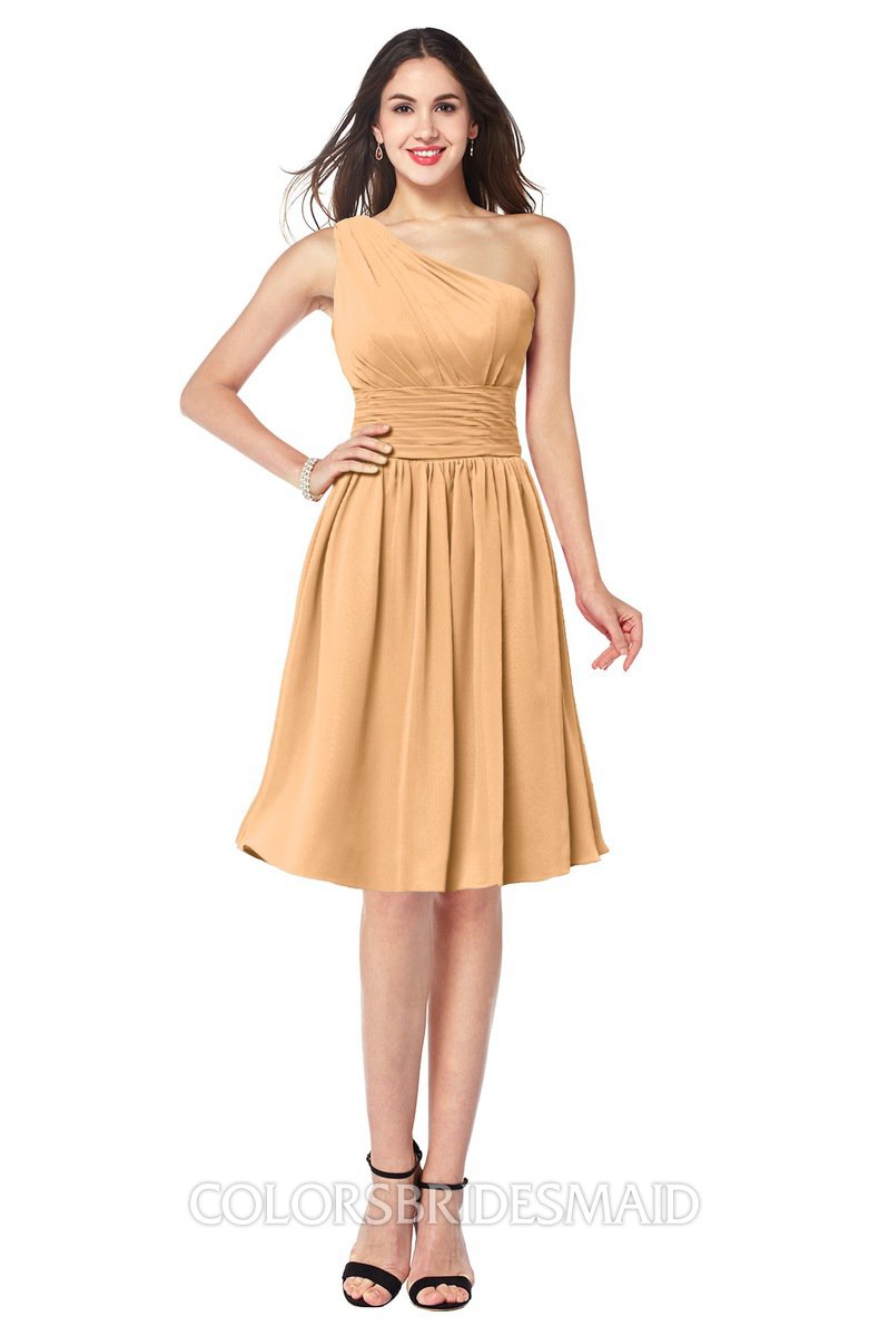 I have purchased a number of dresses from colorsbridesmaid, and I was pretty satisfied with them. Recently, I ordered this one-shoulder knee-length dress in blue glass. The color is very nice. And dress fits me great. Fabric is very soft and wrinkle-resistance. The style is unique but not too odd. I was also impressed at the personal emails from sales persons who helped along the way. I will order again.