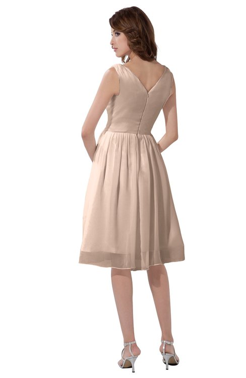 Fresh Salmon Simple A-line V-neck Zipper Knee Length Ruching Party Dresses