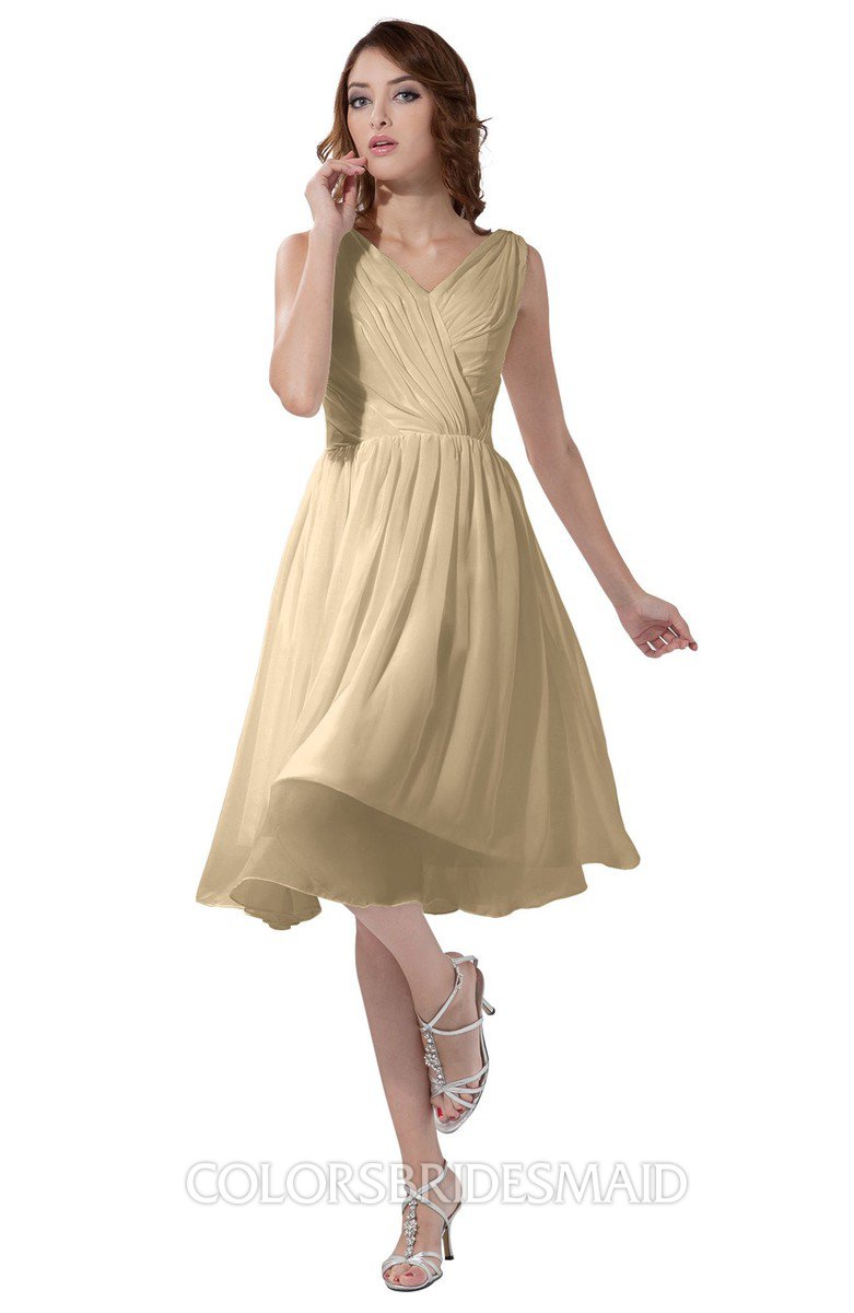 Marzipan Simple A-line V-neck Zipper Knee Length Ruching Party Dresses