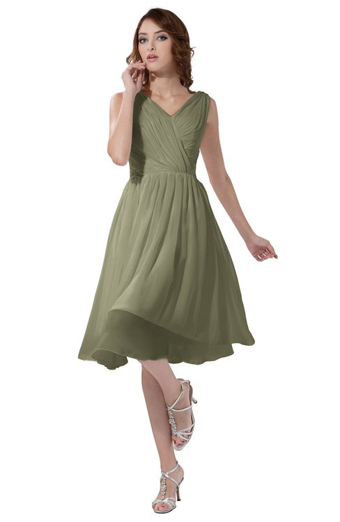 Sponge Simple A-line V-neck Zipper Knee Length Ruching Party Dresses