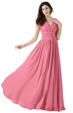 I ordered the floor-length Chiffon dress in pastel pink for my friend's wedding. It turns out good fit, beautiful color,it is just what I expected.