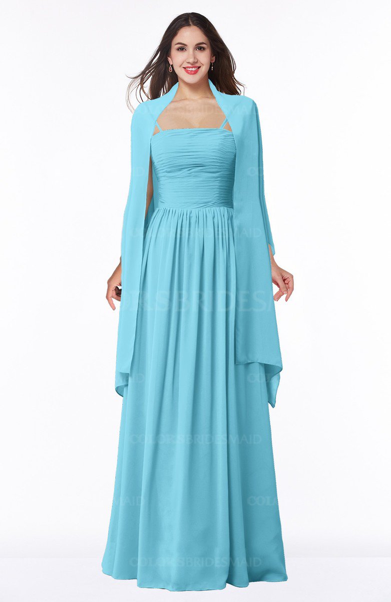 Light Blue Traditional A-line Sleeveless Zip up Chiffon Floor Length Mother of the Bride Dresses